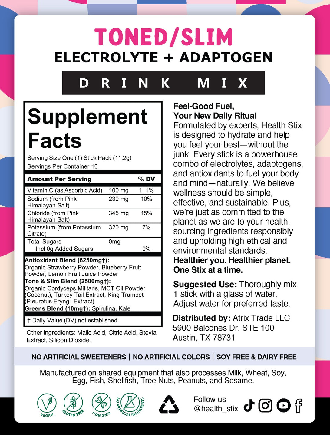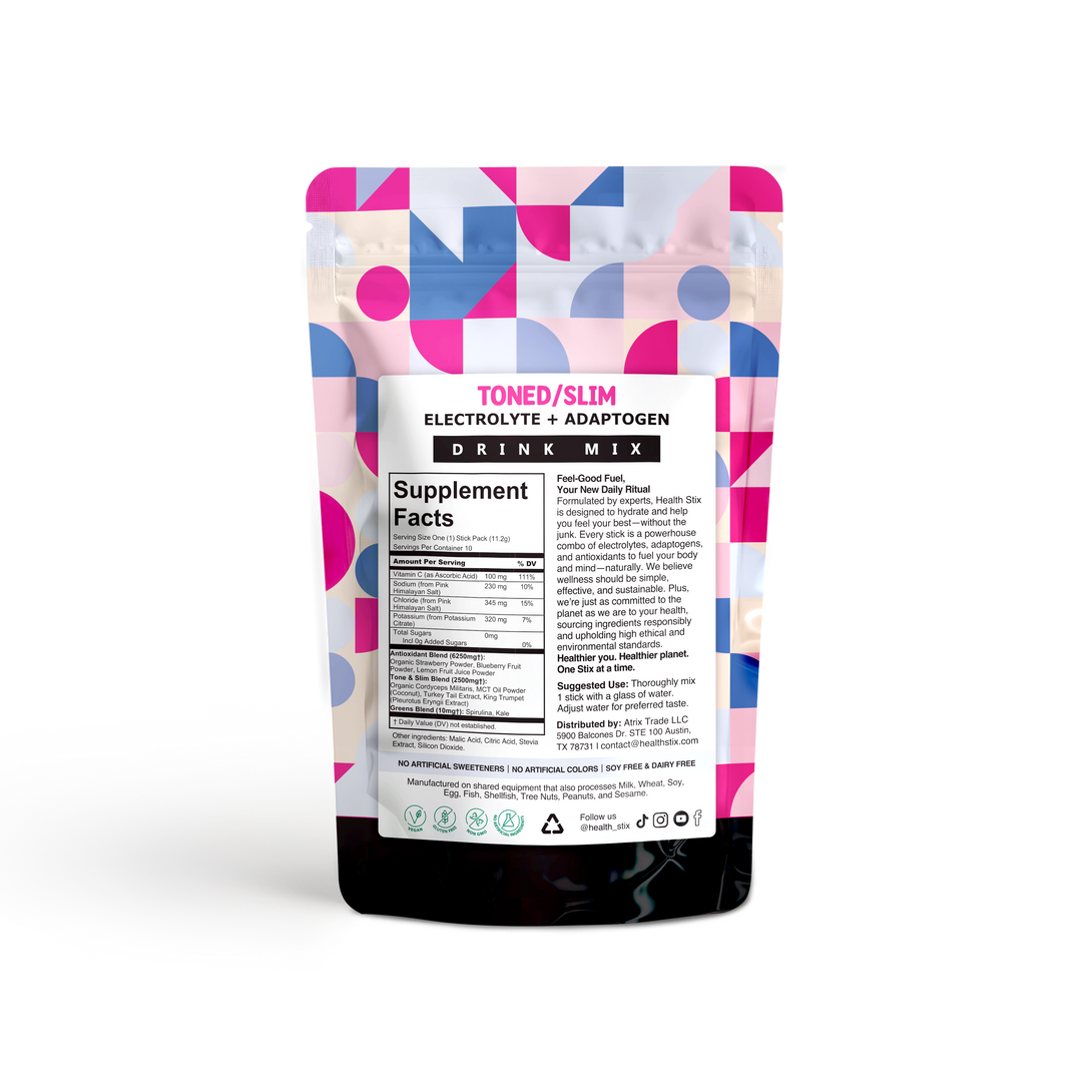 Achieve your fitness and wellness goals with Tone & Slim, an innovative adaptogen mix designed to support your body’s natural processes for getting toned and slimming down. This unique blend combines powerful adaptogens with essential nutrients to help boost your metabolism, enhance fat-burning, and promote a leaner physique. Formulated to assist with appetite control and improve energy levels, Tone & Slim is perfect for integrating into your daily routine as you work towards a healthier, more fit body. Free from artificial additives, this mix provides a clean and effective way to support your weight management and fitness efforts. Simply add it to your favorite beverage and take a step towards achieving your desired body goals and overall well-being.